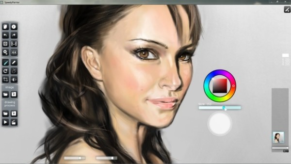Ähnlich wie die neuesten Versionen von Corel Painter bietet Speedy Painter die HUD-Ansicht, die den Farbwähler direkt zum Stift des Anwenders führt, wodurch es einfacher wird, die Farben während der Arbeit zu ändern. Im Gegensatz zu Corel Painter ist der Anwender jedoch nicht auf eine Palette von Farbmustern beschränkt. Hier gibt es eine endlose Auswahl an Farbtönen, und der Benutzer kann einfach alles auswählen, solange es funktioniert.