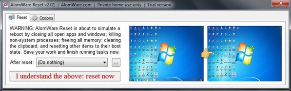 Sie sind mitten in einer Aufgabe und Ihr Computer reagiert nicht schnell. Was werden Sie tun? Vielleicht ist ein Neustart die erste Möglichkeit, die Ihnen in den Sinn kommt. Aber auch der Neustart selbst ist kein schneller Prozess. AlomWare Reset ist eine Freeware, die sich darum kümmern kann.