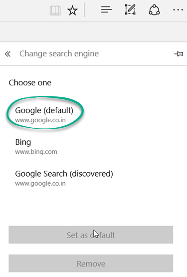 ist an sich gut, einige wollen es in eine andere Suchmaschine wie Google, Yahoo, DuckDuckGo, etc. ändern. Edge ermöglicht es Ihnen, die Standardsuchmaschine zu ändern, vorausgesetzt, sie unterstützt die